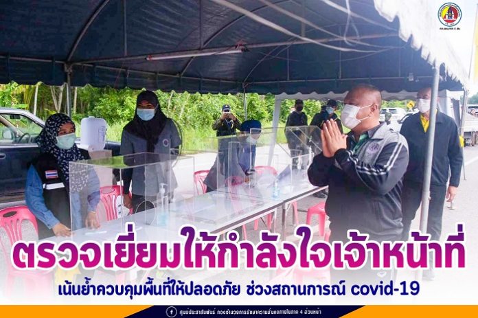 ในระหว่างการเดินทางตรวจเยี่ยมฐานปฏิบัติการในพื้นที่ต่างๆ แม่ทัพภาคที่ 4 ยังได้แวะตรวจเยี่ยม และให้กำลังใจการปฏิบัติงานของเจ้าหน้าที่ประจำ ด่านตรวจ covid – 19 ตำบลแม่ลาน อำเภอแม่ลาน จังหวัดปัตตานี เยี่ยมชมการปฏิบัติงานของชุดปฏิบัติการคัดกรองบุคคล และมาตรการป้องกันตนเองของเจ้าหน้าที่ พร้อมทั้งนำสิ่งของอุปกรณ์จำเป็นมอบให้แก่เจ้าหน้าที่ด่าน เพื่อรองรับการปฏิบัติงานให้มีประสิทธิภาพมากยิ่งขึ้น นอกจากนี้แม่ทัพภาคที่ 4 ยังได้สร้างการรับรู้ให้แก่ประชาชนถึงสถานการณ์การแพร่ระบาดของเชื้อไวรัส covid-19 ที่ทุกคนจะต้องให้ความสำคัญในการป้องกันตนเอง ปฏิบัติตามมาตรการที่ ศบค. กำหนด ทั้งสวมหน้ากากอนามัย การทำความสะอาดด้วยแอลกอฮอล์ และการเว้นระยะห่างทางสังคม รวมทั้งประชาสัมพันธ์ เชิญชวนให้พี่น้องประชาชนรับบริการฉีดวัคซีน เชื่อมั่น และมั่นใจในโยบาย และการดูแลของรัฐบาล เพื่อป้องกัน และยับยั้งการแพร่ระบาดของเชื่อไวรัส covid – 19