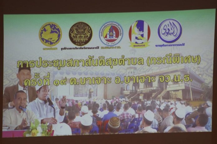 เวทีสภาสันติสุขตำบลบาเจาะ จัดขึ้นเป็นกรณีพิเศษ เพื่อชี้แจงสื่อสารทำเข้าใจเกี่ยวกับสถานการณ์ความไม่สงบในพื้นที่และการแพร่ระบาดของเชื้อไวรัสโควิด-19 ในพื้นที่ โดยเฉพาะการบังคับใช้กฎหมายกับกลุ่มผู้ก่อเหตุรุนแรง เมื่อวันที่ 11 พ.ค. 2564 ที่ผ่านมา รวมทั้งความคืบหน้าคดี และการช่วยเหลือเยียวยากับผู้ได้รับผลกระทบ เพื่อให้สมาชิกสภาสันติสุขตำบลบาเจาะ และประชาชนในพื้นที่ได้รับทราบ นอกจากนี้ ที่ประชุมสภาสันติสุข ยังได้หารือ ถึงการสร้างความตระหนักเรื่องการฉีดวัคซีนให้กับประชาชนได้มีความเข้าใจที่ถูกต้อง เพราะขณะนี้ยอดผู้ลงทะเบียนฉีดวัคซีนของ จ.นราธิวาส มีจำนวนน้อย เนื่องจากประชาชนมีความกังวลในเรื่องส่วนผสมของวัคซีน สภาสันติสุขตำบลบาเจาะจึงได้เน้นย้ำให้สมาชิกสร้างความเข้าใจและสร้างการรับรู้ข่าวสารที่ถูกต้องให้แก่ประชาชน พร้อมรณรงค์ให้เข้ารับการฉีดวัคซีน เพื่อป้องกันและยับยั้งการแพร่ระบาดของเชื้อไวรัสโควิด-19 โดยมี นาวาโท อำนาจ ภู่ทอง รองผู้บังคับหน่วยเฉพาะกิจทหารพรานนาวิกโยธินกองทัพเรือ นายอับดุลฮาเล็ม ลามะทา กำนันตำบลบาเจาะ ประธานสภาสันติสุขตำบลบาเจาะ สมาชิกสภาสันติสุขตำบลบาเจาะ ส่วนราชการ ผู้นำท้องที่ ผู้นำท้องถิ่น ผู้นำศาสนา กลุ่มสตรี และประชาชนในพื้นที่เข้าร่วมเวที ภายใต้มาตรการการป้องกันโรคโควิด 19 อย่างเคร่งครัด
