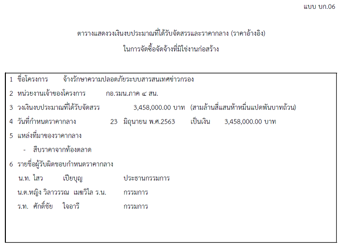 ตารางแสดงวงเงินงบประมาณที่ได้รับจัดสรรและราคากลาง (ราคาอ้างอิง) ในการจัดซื้อจัดจ้างที่มิใช่งานก่อสร้าง โครงการ จ้างรักษาความปลอดภัยระบบสารสนเทศข่าวกรอง