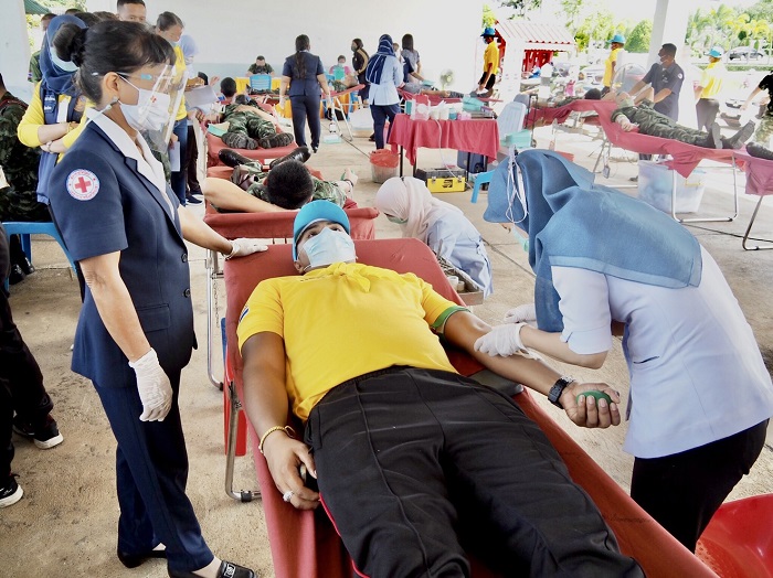 เมื่อวันที่ 25 พ.ค.64 เวลา 09.00 น. กรมทหารราบที่ 152 นำกำลังพลจิตอาสาของหน่วย ร่วมกับ กองอำนวยการรักษาความมั่นคงภายในภาค4ส่วนหน้า จัดกิจกรรมบริจาคโลหิตให้กับเหล่ากาชาดจังหวัดยะลา เพื่อนำไปช่วยเหลือประชาชนในสภาวะที่โลหิตสำรองขาดแคลน และมีผู้บริจาคน้อยลง เนื่องจากสถานการณ์การแพร่ระบาดของเชื้อไวรัสโคโรนา (COVID–19) โดยกิจกรรมครั้งนี้จัดขึ้นบริเวณโรงรถร้อย.บก.ร.152 ค่ายสิรินธร ตำบลเขาตูม อำเภอยะรัง จังหวัดปัตตานี ซึ่งมียอดผู้บริจาค จำนวน 96 นาย ได้เลือดจำนวน 43,200 cc.