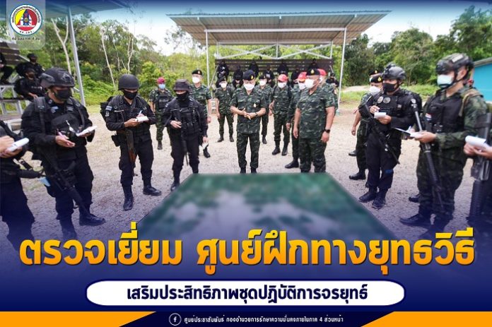 พลเอก พรศักดิ์ พูลสวัสดิ์ ผู้ช่วยผู้บัญชาการทหารบก พร้อมด้วยพลโท เกรียงไกร ศรีรักษ์ แม่ทัพภาคที่ 4 /ผู้อำนวยการรักษาความมั่นคงภายในภาค 4 ผู้บังคับบัญชาจากกองทัพบก ผู้บังคับหน่วยในพื้นที่ร่วมคณะ ตรวจเยี่ยมให้กำลังใจ กำลังพลประจำศูนย์ฝึกทางยุทธวิธี และหัวหน้าชุดปฏิบัติการจรยุทธ์ที่เข้ารับการฝึกในหลักสูตร หัวหน้าชุดปฏิบัติการจรยุทธ์รุ่นที่ 5 ก่อนเยี่ยมชมการสาธิตการฝึก ของ ชุดปฏิบัติการจรยุทธ์ควบคุมพื้นที่ สร้างพื้นฐานจากความเข้าใจมุ่งไปสู่ความชำนาญ ให้กำลังพลสามารถปฏิบัติภารกิจในพื้นที่จังหวัดชายแดนภาคใต้ได้อย่างมีประสิทธิภาพ