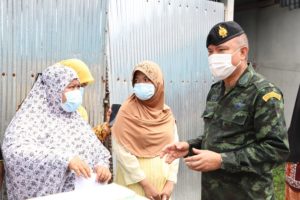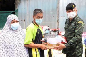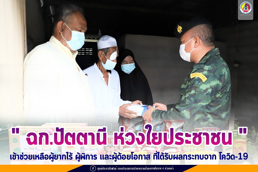 พลตรี คมกฤช รัตนฉายา ผู้บังคับหน่วยเฉพาะกิจปัตตานี ลงพื้นที่อำเภอเมือง จังหวัดปัตตานี ในการดำเนินโครงการ “หน่วยเฉพาะกิจปัตตานี ห่วงใยประชาชน” โดยเข้ามอบสิ่งของเครื่องอุปโภคบริโภคพร้อมเงินช่วยเหลือ ให้กับพี่น้องประชาชนผู้ยากไร้ ผู้พิการ และผู้ด้อยโอกาส ที่ได้รับผลกระทบจากการแพร่ระบาดของเชื้อไวรัสโคโรนา 2019 (COVID-19) จำนวน 3 ราย ประกอบด้วย นายสุริยา แซ่อิ้น ผู้ป่วยพิการทางสมองในพื้นที่ ตำบลจะบังติกอ, นายจักรพงษ์ ผ่องอำไพ ผู้ป่วยพิการทางสมองในพื้นที่ ตำบลบานา และ นายสะแปอิง อุเซ็ง ผู้ป่วยพิการหูหนวก ตาบอด ในพื้นที่ ตำบลอาเนาะรู อำเภอเมือง จังหวัดปัตตานี