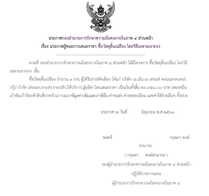 จัดซื้อ จัดจ้างประกาศผู้ชนะการเสนอราคา ประกาศผู้ชนะเสนอราคา ซื้อวัสดุสิ้นเปลือง โดยวิธีเฉพาะเจาะจง (29,954.00) July 29, 2020 1155 Share Facebook Twitter Google+ Telegram LINE สบป.กอ.รมน.ภาค ๔ สน.