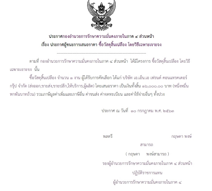 ประกาศผู้ชนะเสนอราคา ซื้อวัสดุสิ้นเปลือง โดยวิธีเฉพาะเจาะจง (16,000.00)