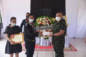 ในการนี้แม่ทัพภาคที่ 4 ได้วางหรีดเคารพศพ ในนามของนายกรัฐมนตรี /รัฐมนตรีว่าการกระทรวงกลาโหม ผู้บัญชาการทหารบก และแม่ทัพภาคที่ 4 ตามลำดับ พร้อมมอบเหรียญบางระจัน เพื่อประกาศเกียรติคุณยกย่องเชิดชูเกียรติแก่วีรชนผู้กล้าที่เสียสละ เพื่อความสงบของพื้นที่จังหวัดชายแดนภาคใต้ ก่อนเข้าสู่พิธีรดน้ำศพ อาสาสมัครทหารพราน กัณมิตร รัตโน โดยมี หัวหน้าส่วนราชการ ผู้บังคับบัญชา เพื่อนทหาร ตำรวจ ร่วมรดน้ำศพ พร้อมกันนี้ได้มอบเงินช่วยเหลือเบื้องต้น จากผู้บัญชาการทหารบก และแม่ทัพภาคที่ 4 แก่ครอบครัวของผู้เสียชีวิต ท่ามกลางความโศกเศร้าเสียใจที่ต้องสูญเสียบุคคลอันเป็นที่รัก โดยมีกำหนดพิธีสวดพระอภิธรรมศพ ตั้งแต่วันที่ 2 – 6 มิถุนายน 2564
