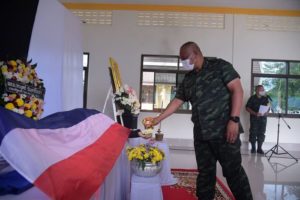 วันนี้ 2 มิถุนายน 2564 เวลา 14.00 น. ณ วัดสุคิรินประชาราม ตำบลสุคิริน อำเภอสุคิริน จังหวัดนราธิวาส พลโท เกรียงไกร ศรีรักษ์ แม่ทัพภาคที่ 4 /ผู้อำนวยการรักษาความมั่นคงภายในภาค 4 เป็นประธานในพิธีวางหรีดเคารพศพ และรดน้ำศพ อาสาสมัครทหารพราน กัณมิตร รัตโน อายุ 24 ปี กำลังพล สังกัดกองร้อยทหารพรานที่ 4913 หน่วยเฉพาะกิจกรมทหารพรานที่ 49 เสียชีวิต จากเหตุการณ์ความไม่สงบในพื้นที่ ตำบลศรีบรรพต อำเภอศรีสาคร จังหวัดนราธิวาส เมื่อวันที่ 1 มิถุนายน ที่ผ่านมา