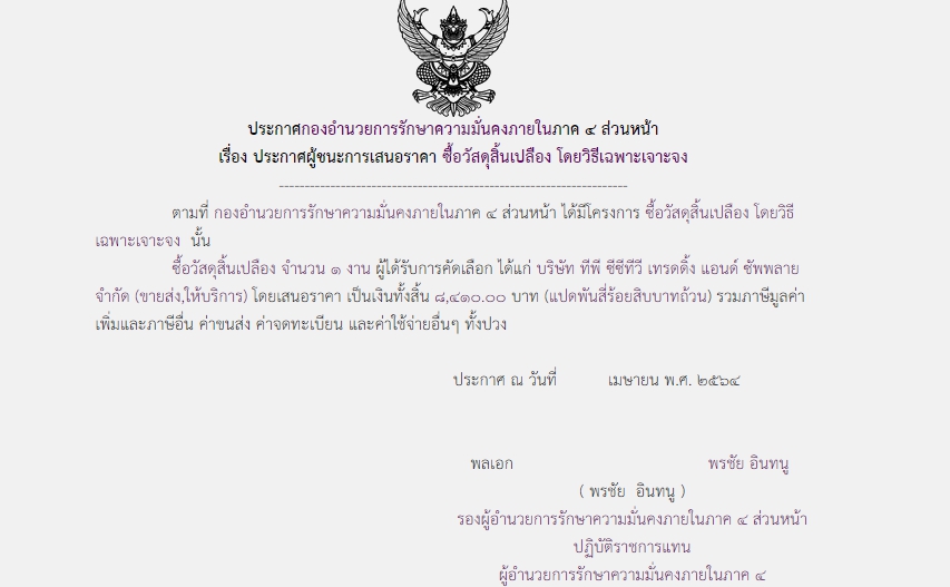 จัดซื้อ จัดจ้างประกาศผู้ชนะการเสนอราคา ประกาศผู้ชนะการเสนอราคา ซื้อวัสดุสิ้นเปลือง โดยวิธีเฉพาะเจาะจง (8,410.00) June 3, 2021 659 Share Facebook Twitter Google+ Telegram LINE สกบ.กอ.รมน.ภาค 4 สน.