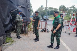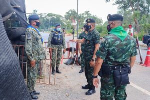 เมื่อวันที่ 3 มิถุนายน 2564 เวลา 13.10 น. พลตรีศานติ ศกุนตนาค ผู้บัญชาการกองพลทหารราบที่ 5 /ผู้บังคับหน่วยเฉพาะกิจสงขลา ตรวจเยี่ยม จุดตรวจป้อมน้ำค้าง เพื่อติดตามการปฏิบัติงานตามนโยบายของผู้อำนวยการรักษาความมั่นคงภายในภาค 4 โดยเน้นย้ำมาตรการป้องกันตนเอง ให้กำลังพลมีความพร้อมอยู่เสมอ สามารถตอบโต้ได้อย่างทันทวงที และอย่าประมาทต่อสถานการณ์ในพื้นที่ ตลอดจนสอบถามปัญหาข้อเสนอแนะในแต่ละพื้นที่ เพื่อสร้างขวัญและกำลังใจในการปฏิบัติงานของกำลังพลในพื้นที่ ณ จุดตรวจป้อมน้ำค้าง ตำบลสะบ้าย้อย อำเภอสะบ้าย้อย จังหวัดสงขลา