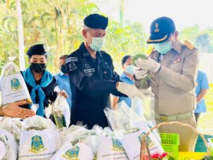 ที่ โครงการฟาร์มตัวอย่างในสมเด็จพระนางเจ้าสิริกิติ์ พระบรมราชินีนาถ บ้านป่าตาเขียว ตำบลท่าข้าม อำเภอปะนาเระ จังหวัดปัตตานี พลตรี ไพศาล หนูสังข์ ผู้บัญชาการกองพลทหารราบที่ 15 / ผู้อำนวยการศูนย์ประสานงานโครงการอันเนื่องมาจากพระราชดำริ พร้อมด้วย พันเอก อิศรา จันทะกระยอม ผู้บังคับการกรมทหารราบที่ 153 / หัวหน้าคณะทำงานฯที่ 2,หน่วยเฉพาะกิจกรมทหารพรานที่ 42,เจ้าหน้าที่ตำรวจ, ฝ่ายปกครอง และสมาชิกราษฎรอาสารักษาหมู่บ้าน เข้าร่วมกิจกรรม ส่งต่อความห่วงใย บุกถึงบ้าน แจกจ่ายผลผลิตโครงการฟาร์มตัวอย่างอันเนื่องมาจากพระราชดำริฯ พร้อมด้วยหน้ากากอนามัย และเจลแอลกอฮอล์ ถึงมือพี่น้องประชาชนในพื้นที่ โดยศูนย์ประสานงานโครงการอันเนื่องมาจากพระราชดำริ ร่วมกับโครงการฟาร์มตัวอย่างอันเนื่องมาจากพระราชดำริในสมเด็จพระนางเจ้าสิริกิติ์ พระบรมราชินีนาถ ให้การสนับสนุนผลผลิตทางการเกษตร เพื่อบรรเทาความเดือดร้อนให้เกิดประโยชน์สูงสุดกับประชาชนในพื้นที่ชุมชนบ้านสวนหมาก และชุมชนบ้านท่ามะนาว ตำบลท่าข้าม อำเภอปะนาเระ จังหวัดปัตตานี ซึ่งมีประชากรอาศัยอยู่รวมกัน จำนวน 230 ครัวเรือน เป็นชุมชนไทยพุทธ สมาชิกส่วนใหญ่ของชุมชนเป็นผู้สูงอายุอาศัยอยู่โดยลำพัง ขาดคนดูแล บุตรหลานออกไปทำงานในต่างพื้นที่ และได้รับผลกระทบจากสถานการณ์การแพร่ระบาดของเชื้อไวรัส COVID-19
