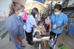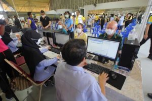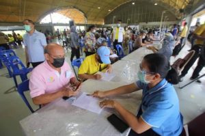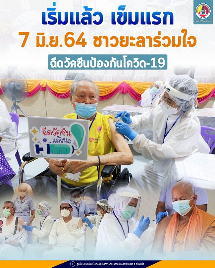 วันนี้ ( 7 มิ.ย.64 ) บรรยากาศของการฉีดวัคซีนโควิด-19 แก่ประชาชนในกลุ่มผู้สูงอายุ 60 ปีขึ้นไปและผู้ป่วย 7 กลุ่มโรค ในพื้นที่เขต อ.เมืองยะลา ที่ได้ลงทะเบียนผ่านหมอพร้อม ณ หน่วยบริการฉีดวัคซีนโควิด-19 อาคารศรีนิบง ศูนย์เยาวชนเทศบาลนครยะลาวันแรกเป็นไปอย่างคึกคัก ได้มีประชาชนทยอยเดินทางมารับบริการกันตั้งแต่เช้า โดยมีเจ้าหน้าที่คอยอำนวยความสะดวกชี้แจงทำความเข้าใจในขั้นตอนต่างๆของการรับบริการเพื่อไม่ให้เกิดข้อผิดพลาด