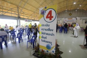 โดยประชาชนที่มารับบริการนั้น เจ้าหน้าที่จะทำการตรวจสอบรายชื่อ จากนั้นเข้าจุดตรวจคัดกรอง ล้างมือ วัดไข้ ก่อนไปตามจุดต่างๆ ที่กำหนด ทั้ง จุดตรวจสอบรายชื่อ ,รับคิว จุดวัดความดัน,บันทึกน้ำหนัก,ส่วนสูง จุดลงทะเบียน จุดประเมินความเสี่ยง,ให้คำแนะนำ,เซ็นใบยินยอม จุดรอฉีดวัคซีน,ฉีดวัคซีน จุดสังเกตอาการหลังฉีดวัคซีน,ให้ความรู้,แนะนำการใช้”หมอพร้อม” และจุด ตรวจสอบเวลา และเอกสารก่อนกลับบ้าน ส่วนผู้สูงอายุและผู้ที่ใช้วีลแชร์ จะใช้วิธีการโฟร์คลิฟท์ รถยก อำนวยความสะดวกให้ผู้ที่ต้องนั่งรถเข็น เนื่องจากเป็นอาคารยกพื้น