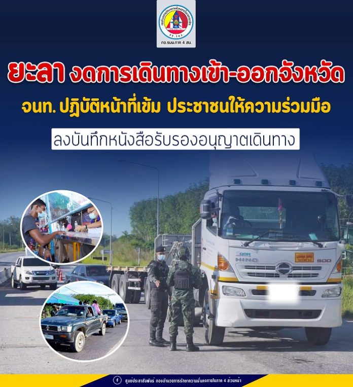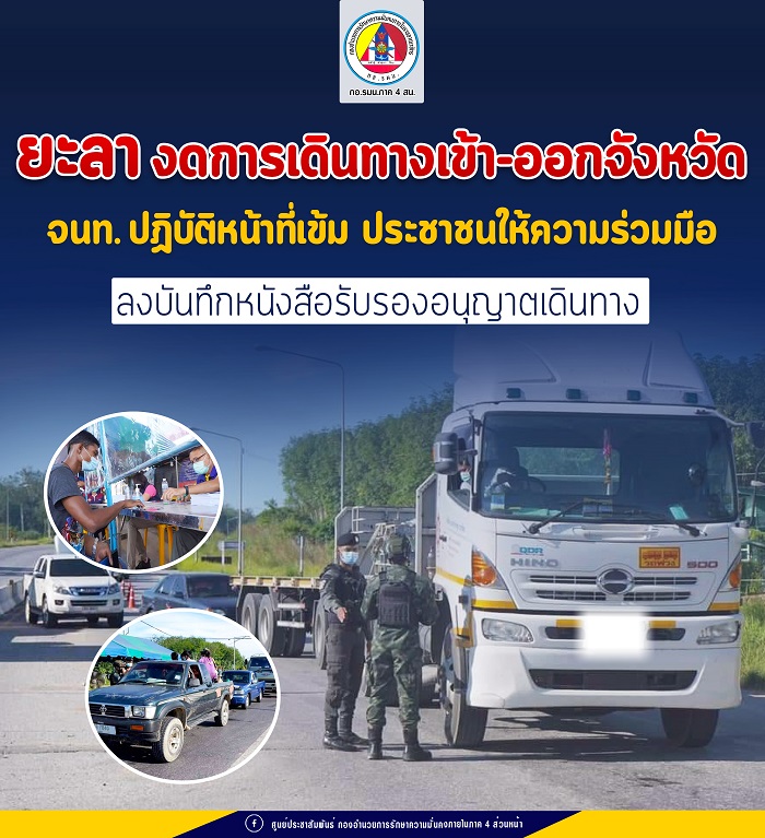 ทั้งนี้ จากสถานการณ์การแพร่ระบาดของโควิด-19 ที่เกิดขึ้นในพื้นที่จังหวัดยะลา ข้อมูล วันที่ 14 มิถุนายน 2564 ยะลาพบผู้ติดเชื้อรายใหม่ 17 ราย สะสม 547 ราย เสียชีวิต 5 ราย ทาง ศบค.จังหวัดยะลา ได้ออกคำสั่งประกาศการใช้มาตรการป้องกันการแพร่ระบาดขั้นสูงสุด งดการเดินทางเข้า – ออกพื้นที่จังหวัดยะลา เป็นเวลา 4 สัปดาห์ งดทานอาหารในร้านอาหาร ให้ซื้อกลับบ้าน เป็นเวลา 3 สัปดาห์ และงดละหมาดวันศุกร์ เป็นเวลา 3 สัปดาห์ เพื่อให้บุคลากรทางการแพทย์ ฝ่ายปกครอง และเจ้าหน้าที่ทุกฝ่ายได้เข้าเคลียร์พื้นที่ และจำกัดพื้นที่ เพื่อป้องกันการแพร่ระบาด พร้อมทั้งขอความร่วมมือประชาชนในพื้นที่จังหวัดยะลาถือปฏิบัติอย่างเคร่งครัด และให้ทางเจ้าหน้าที่ตำรวจ ทหาร ฝ่ายปกครอง ดำเนินการบังคับใช้กฎหมายอย่างเข้มข้น พร้อมทั้งการประเมินสถานการณ์อย่างต่อเนื่อง หากสถานการณ์ดีขึ้น ก็จะเปิดการผ่อนปรนมาตรการ ตามความเหมาะสมต่อไป