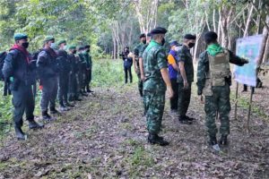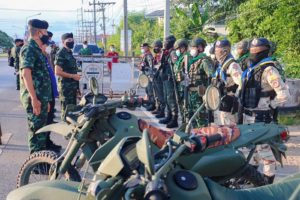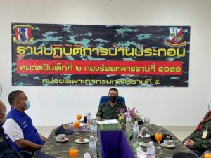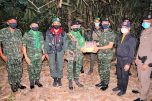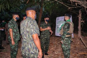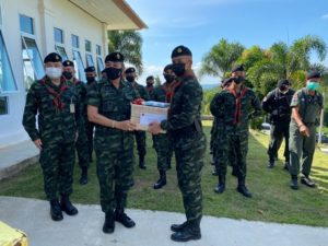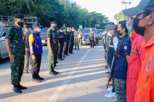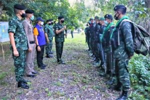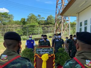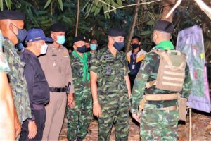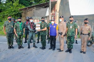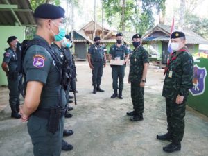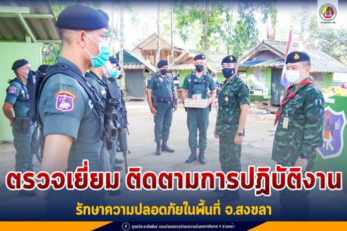 จากนั้น ผู้บัญชาการกองพลทหารราบที่ 5 / ผู้บังคับหน่วยเฉพาะกิจสงขลา เดินทางลงพื้นที่หมวดปืนเล็กที่ 2 กองร้อยทหารราบที่ 5021 ตำบลประกอบ อำเภอนาทวี จังหวัดสงขลา และชุดเฝ้าตรวจชายแดนชายแดนที่ 4306 (ชฝต.4306) บ้านสำนักเอาะ หมู่ที่ 5 ตำบลเขาเเดง อำเภอสะบ้าย้อย จังหวัดสงขลา เพื่อตรวจเยี่ยมและติดตามการปฏิบัติตามมาตรการรองรับผลกระทบจากการขยายห้วงเวลาล็อกดาวน์ของประเทศมาเลเซีย พร้อมทั้งเน้นย้ำหน่วยในพื้นที่ต้องปรับเปลี่ยนยุทธวิธีในการปฏิบัติภารกิจให้ครอบคลุมทุกพื้นที่ โดยการประสานงานร่วมกันระหว่างทุกภาคส่วน จัดชุดปฏิบัติการจรยุทธ์ ลาดตระเวนสกัดกั้นไม่ให้มีการลักลอบผ่านช่องทางธรรมชาติโดยเด็ดขาด และการดูแลป้องกันชายแดนไทย-มาเลเซีย รวมไปถึงการสร้างความตระหนักรู้ให้กับประชาชนในพื้นที่ ทั้งผู้นำศาสนา ผู้นำท้องถิ่น กำนัน ผู้ใหญ่บ้าน และประชาชนให้ทุกคนมีส่วนร่วมในการป้องกันไม่ให้มีการนำเชื้อโควิด-19 จากประเทศเพื่อนเข้ามาในประเทศ พร้อมทั้งเน้นย้ำให้กำลังพลมีความพร้อมในการปฏิบัติงานตลอดเวลา และปฏิบัติตามข้อเน้นย้ำ/สั่งการของผู้บังคับบัญชาอย่างเคร่งครัด