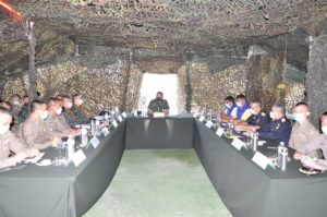 พลตรี ศานติ ศกุนตนาค ผู้บัญชาการกองพลทหารราบที่ 5 / ผู้บัญชาการกองกำลังเทพสตรี พร้อมด้วย หัวหน้าส่วนราชการ ผู้บังคับหน่วยที่รับผิดชอบพื้นที่แนวชายแดน จังหวัดสตูล และจังหวัดสงขลา ร่วมประชุมติดตามมาตรการรองรับผลกระทบจากการขยายห้วงเวลาล็อกดาวน์ของมาเลเซีย เน้นย้ำการปฏิบัติตามนโยบายของผู้อำนวยการรักษาความมั่นคงภายในภาค 4 / ผู้บัญชาการศูนย์ปฏิบัติการกองทัพภาคที่ 4 พร้อมสั่งการเพิ่มมาตรการสกัดกั้น และเข้มงวดการควบคุมพื้นที่ตามแนวชายแดน บูรณาการ กำลัง ทหาร ตำรวจ ฝ่ายปกครอง ผู้นำท้องที่ ผู้นำท้องถิ่น และหน่วยงานที่เกี่ยวข้องต่างๆ ทำงานร่วมกัน โดยมีเครื่องมือพิเศษเข้าเสริมอุดช่องว่างตลอดแนวชายแดน เพื่อให้เกิดประสิทธิภาพสูงสุดในการป้องกันการลักลอบเข้าเมืองโดยที่กฎหมายตามแนวชายแดนในช่วงสถานการณ์การแพร่ระบาดของเชื้อไวรัสโควิด-19 ณ ที่บังคับการทางยุทธวิธีกองกำลังเทพสตรี บ้านด่านนอก อำเภอสะเดา จังหวัดสงขลา