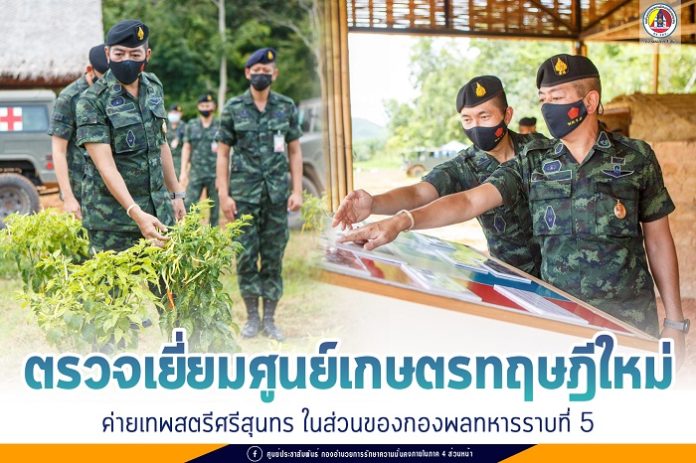 เมื่อวันที่ 18 มิถุนายน 2564 พลตรี ศานติ ศกุนตนาค ผู้บัญชาการกองพลทหารราบที่ 5 ลงพื้นที่ตรวจเยี่ยมศูนย์เกษตรทฤษฎีใหม่ครบวงจร ของกองพันทหารช่างที่ 5 กองพลทหารราบที่ 5 (หน่วยต้นแบบ) เพื่อรับทราบข้อมูลรายละเอียดการปฏิบัติของศูนย์ฯ และแผนการดำเนินงาน ซึ่งมีวัตถุประสงค์ในการเผยแพร่ความรู้ให้กับกำลังพลและครอบครัว โดยการนำเกษตรทฤษฎีใหม่มาปรับใช้ควบคู่กับหลักปรัชญาเศรษฐกิจพอเพียง เพื่อมุ่งหวังที่จะสร้างความมั่นคงทางด้านอาหาร ที่จะสามารถเลี้ยงดูกำลังพลและครอบครัวได้ในระดับหนึ่ง ซึ่งมีทั้งข้าวปลา อาหาร พลังงาน ร่วมถึงการจัดการอย่างเป็นระบบ ณ กองพันทหารช่างที่ 5 กองพลทหารราบที่ 5 ค่ายเทพสตรีศรีสุนทร ตำบลกะปาง อำเภอทุ่งสง จังหวัดนครศรีธรรมราช