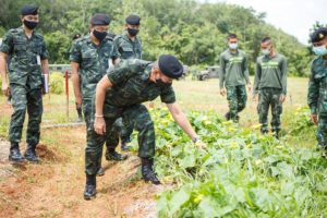 จากนั้นได้เดินทางตรวจเยี่ยมโครงการทหารพันธุ์ดี ของ ค่ายเทพสตรีศรีสุนทร ในส่วนของกองพลทหารราบที่ 5 เพื่อรับทราบข้อมูลความคืบหน้าในการปฏิบัติ และแผนการดำเนินการของหน่วยรอง โดยได้เน้นย้ำให้ผู้บังคับหน่วย ที่รับผิดชอบพื้นที่โครงการ กำกับดูแลการปฏิบัติอย่างใกล้ชิด และดำเนินการให้เต็มขีดความสามารถ สำหรับโครงการทหารพันธุ์ดีได้จัดตั้งขึ้นตามนโยบายกองทัพบก เพื่อนำผลิตผลจากโครงการไปช่วยเหลือบรรเทาความเดือดร้อนให้กับประชาชนในพื้นที่