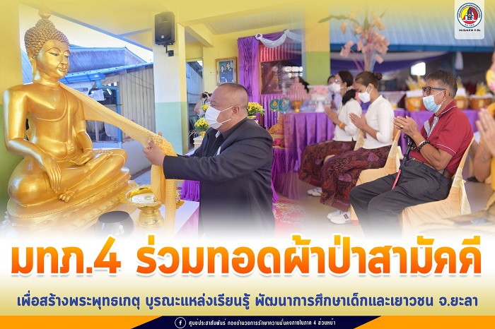 วันนี้ (26 มิถุนายน 2564) เวลา 09.30 น. ที่ โรงเรียนอนุบาลเบตง (สุภาพอนุสรณ์) อำเภอเบตง จังหวัดยะลา พลโท เกรียงไกร ศรีรักษ์ แม่ทัพภาคที่ 4 / ผู้อำนวยการรักษาความมั่นคงภายในภาค 4 ร่วมพิธีทำบุญทอดผ้าป่าสามัคคี (ผ้าไตรประทานสมเด็จพระอริยวงศาคตญาณ สมเด็จพระสังฆราช) ถวายเป็นพระราชกุศล เนื่องในวันคล้ายวันพระราชสมภพ สมเด็จพระนางเจ้าสุทิดา พัชรสุธาพิมลลักษณ พระบรมราชินี รายได้เพื่อก่อสร้างศาลาพระพุทธเกตุ บูรณะแหล่งเรียนรู้ศาสตร์พระราชา และซ่อมแชมอาคารเรียน โดยมี พระโสภณธรรมมุนี ดร. รองเจ้าคณะจังหวัดยะลา และเจ้าอาวาสวัดนิโรธสังฆาราม เป็นองค์อุปถัมภ์ และเป็นประธานฝ่ายสงฆ์, นายสกุล เล็งลักน์กุล นายกเทศมนตรีเมืองเบตง ประธานฝ่ายฆราวาส, ผู้บังคับหน่วยเฉพาะกิจยะลา, รองผู้ว่าราชการจังหวัดยะลา, นายอำเภอเบตง, ผู้อำนวยการโรงเรียนอนุบาลเบตง (สุภาพอนุสรณ์), ส่วนราชการ ทหาร ตำรวจ ตลอดจนพุทธศาสนิกชนในพื้นที่เข้าร่วมพิธี ภายใต้มาตรการการป้องกันการแพร่ระบาดของเชื้อไวรัสโคโรนา 2019(covid-19) อย่างเคร่งครัด ก่อนเยี่ยมชมการดำเนินงานอุทยานศาสตร์พระราชาภายในโรงเรียน
