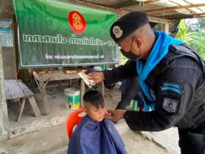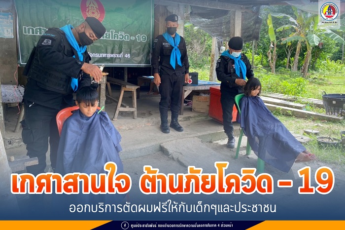 หน่วยเฉพาะกิจกรมทหารพรานที่ 46 โดย กองร้อยทหารพรานที่ 4601 ลงพื้นที่ออกบริการตัดผม ฟรีให้กับเด็กๆ และประชาชน ในโครงการเกศาสานใจ ต้านภัยโควิด – 19 เพื่อเป็นการบรรเทาความเดือดร้อนให้กับเด็กๆและประชาชนในพื้นที่ โดยการดูแลเรื่องการบริการตัดผมฟรี “เกศาสานใจ ต้านภัยโควิด – 19” เราพร้อมเสมอที่จะดูแลพี่น้องประชาชนให้อยู่ดีที่สุด
