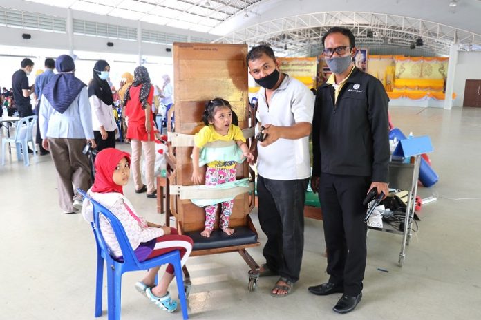 สำหรับ กิจกรรมขยายผลการนำนวัตกรรมสำหรับการฟื้นฟูสภาพเด็กพิการ สนองแนวพระราชดำริ ในการช่วยเหลือและพัฒนาคุณภาพชีวิตครอบครัวเด็กพิการในพื้นที่จังหวัดชายแดนภาคใต้ “เก้าอี้สุขใจ สู่ รองเท้าสั่งตัด ปีที่ 4” ตามโครงการอันเนื่องมาจากพระราชดำริ เป็นโครงการที่ศูนย์อำนวยการบริหารจังหวัดชายแดนภาคใต้ (ศอ.บต.) ได้ขับเคลื่อนดูแลพี่น้องประชาชนตามพระราชดำริของสมเด็จพระกนิษฐาธิราชเจ้า กรมสมเด็จพระเทพรัตนราชสุดาฯ สยามบรมราชกุมารี ที่ทรงห่วงใยพี่น้องในพื้นที่และมีดำริโครงการต่าง ๆ เพื่อดูแลทุกข์สุขของพี่น้อง โดยเฉพาะเด็กและครอบครัวเด็กพิเศษจังหวัดชายแดนภาคใต้ ซึ่ง ศอ.บต. พร้อมหน่วยงานในพื้นที่ได้ร่วมขับเคลื่อนทุกโครงการเชิงรุกเพื่อเข้าถึงพี่น้องประชาชนที่เจ็บป่วย แม้ในพื้นที่ที่อยู่ห่างไกลด้วยรถสิริเวชยาน