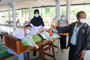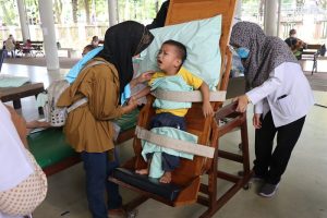 ที่ อาคารรื่นอรุณ อำเภอสุไหงโก-ลก จังหวัดนราธิวาส ศูนย์อำนวยการบริหารจังหวัดชายแดนภาคใต้ (ศอ.บต.) ร่วมกับโรงพยาบาลสุไหงโก-ลก ลงพื้นที่พบปะ พูดคุยและให้กำลังใจแก่เด็กและครอบครัวเด็กพิเศษ ภายใต้กิจกรรมขยายผลการนำนวัตกรรมสำหรับการฟื้นฟูสภาพเด็กพิการ สนองแนวพระราชดำริ ในการช่วยเหลือและพัฒนาคุณภาพชีวิตครอบครัวเด็กพิการในพื้นที่จังหวัดชายแดนภาคใต้ “เก้าอี้สุขใจ สู่ รองเท้าสั่งตัด ปีที่ 4” โดยในครั้งนี้มีครอบครัวเด็กพิเศษพาบุตรหลานมาวัดขนาดเท้ากับคณะแพทย์ และเจ้าหน้าที่กายภาพบำบัด ของโรงพยาบาลสุไหงโก-ลก จังหวัดนราธิวาส เพื่อสั่งตัดรองเท้า ในโครงการ เก้าอี้สุขใจสู่รองเท้าสั่งตัด ปีที่ 4 พร้อมสาธิตการฝึกเดินกับอุปกรณ์ในรถสิริเวชยาน และการทำกายภาพบำบัด โดยใช้เตียงฝึกยืน เพื่อให้เด็กได้พยุงร่างกายของตนเอง ฝึกการทรงตัวตรงและขยับเขยื้อนร่างกายให้แข็งแรงตามลำดับให้กับน้อง ๆ พิการในครั้งนี้อีกด้วย
