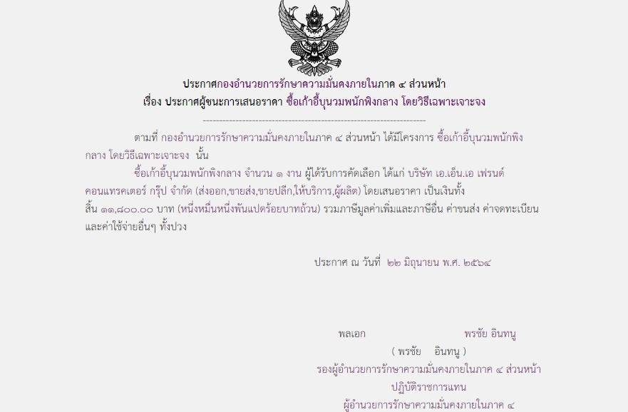 ประกาศผู้ชนะการเสนอราคา ซื้อเก้าอี้บุนวมพนักพิงกลาง โดยวิธีเฉพาะเจาะจง ( ๑๑,๘๐๐.๐๐ บาท )
