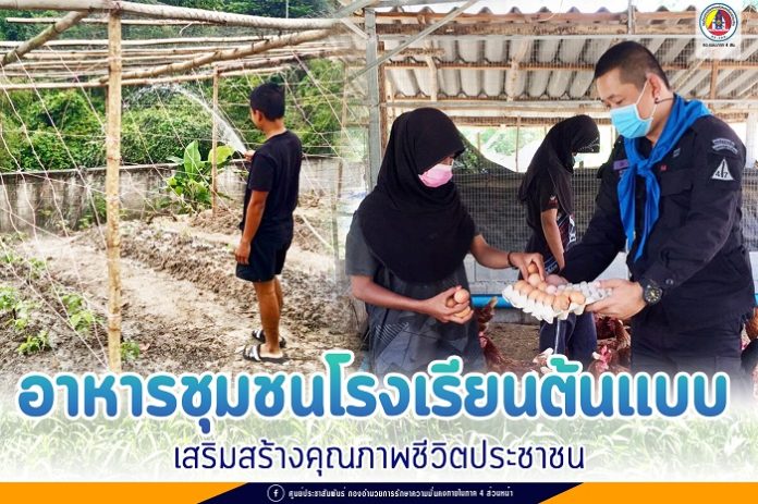 ที่ ศูนย์การเรียนรู้เศรษฐกิจพอเพียง โรงเรียนบ้านตันหยง หมู่ที่ 2 ตำบลบาโร๊ะ อำเภอยะหา จังหวัดยะลา หน่วยเฉพาะกิจกรมทหารพรานที่ 47 ดำเนินการขับเคลื่อนโครงการ “อาหารชุมชนโรงเรียนต้นแบบ” ตามพระราชดำริ ในสมเด็จพระกนิษฐาธิราชเจ้า กรมสมเด็จพระเทพรัตนราชสุดา ฯ สยามบรมราชกุมารี โดยใช้โรงเรียนเป็นศูนย์กลางในการให้ความรู้ในด้านการเกษตร และลงมือปฏิบัติร่วมกัน ภายใต้การยึดหลักปรัชญาเศรษฐกิจพอเพียงมาดำเนินงาน ซึ่งเจ้าหน้าที่ทหารพรานได้แนะนำและส่งเสริมความรู้ด้านการเกษตรให้กับนักเรียนโรงเรียนบ้านตันหยงเพื่อให้โรงเรียนแห่งนี้เป็นแหล่งอาหารกลางวันให้เด็กนักเรียน ได้บริโภคอาหารที่ปลอดภัยมีคุณค่าทางโภชนาการ และเป็นแหล่งเรียนรู้ให้กับนักเรียนและประชาชนในพื้นที่ใกล้เคียง ได้นำไปปฏิบัติในชีวิตประจำวัน อันจะทำให้มีคุณภาพชีวิตที่ดีขึ้น รวมทั้งส่งเสริมให้นักเรียนมีความรู้ความเข้าใจ เกี่ยวกับการปลูกพืชผักและสามารถใช้ได้จริงในชีวิตประจำวัน