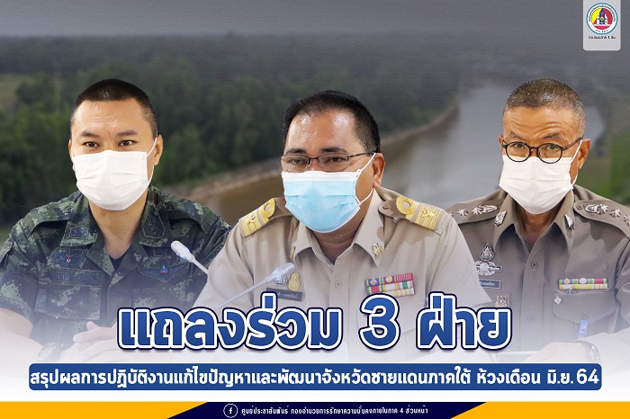โดย พันเอก เกียรติศักดิ์ ณีวงษ์ โฆษกกองอำนวยการรักษาความมั่นคงภายในภาค 4 ส่วนหน้า เปิดเผยว่า ในห้วงเดือน มิถุนายน 2564 กองอำนวยการรักษาความมั่นคงภายในภาค 4 ส่วนหน้า ได้ปฏิบัติภารกิจในการควบคุมพื้นที่ ป้องกันและแก้ไขปัญหายาเสพติด ส่งเสริมการอยู่ร่วมกันในสังคมพหุวัฒนธรรม ช่วยเหลือพี่น้องประชาชนในห้วงที่มีการแพร่ระบาดของโรคโควิด 19 และช่วยเหลือภาคส่วนต่างๆ ในการพัฒนาพื้นที่จังหวัดชายแดนภาคใต้ ทั้งด้านการควบคุมพื้นที่และการบังคับใช้กฎหมายตามที่หน่วยเฉพาะกิจปัตตานี ได้ทำการสืบทราบ รวมทั้งได้รับแจ้งจากแหล่งข่าวภาคประชาชนว่าพบบุคคล ต้องสงสัยมาพักหลบซ่อนอยู่ในรีสอร์ทแห่งหนึ่งทราบชื่อภายหลังคืออาวาดา รีสอร์ท หมู่3 ตำบลแหลมโพธิ์ อำเภอยะหริ่ง จังหวัดปัตตานี ภายหลังรับแจ้งข่าวจึงได้ทำการตรวจสอบประวัติและพฤติกรรมพบเป็นผู้ต้องหาตามหมายจับประมวลกฎหมายวิธีพิจารณาความอาญา พักหลบซ่อนอยู่จริงจึงได้สนธิกาลัง 3 ฝ่าย เข้าทำการตรวจพิสูจน์ทราบเพื่อบังคับใช้กฎหมาย หน่วยได้ดำเนินตามขั้นตอนในการบังคับใช้กฎหมายด้วยความโปร่งใสและใช้มาตรการจากเบาไปหาหนัก ภายใต้การมีส่วนร่วมและรับรู้ของผู้นำศาสนา ผู้นำชุมชนในพื้นที่ในการช่วยเจรจาเกลี้ยกล่อมกว่า 6 ชั่วโมง เพื่อให้คนร้ายมอบตัวไปต่อสู้คดีแต่กลุ่มคนร้ายไม่ยินยอมและได้ใช้อาวุธไม่ทราบชนิดและขนาดยิงใส่เจ้าหน้าที่เป็นระยะๆ อยู่ตลอดเวลาเพื่อเปิดทางหนี เจ้าหน้าที่จึงจำเป็นต้องตอบโต้เพื่อป้องกันตัว จนนำไปสู่การสูญเสียดังกล่าว อย่างไรก็ตามภายหลังเกิดเหตุได้มีการใช้สื่อสังคมออนไลน์บิดเบือนข้อเท็จจริงและเสนอข้อมูลอันเป็นเท็จ เพื่อสร้างความเห็นใจพร้อมฉวยโอกาสเรียกรับเงินบริจาคเพื่อช่วยเหลือครอบครัวผู้ที่สูญเสีย จึงใคร่ขอยืนยันเพื่อสร้างความเข้าใจให้ตรงกันอีกครั้งว่า ถึงแม้ว่าเจ้าหน้าที่ได้ใช้ความพยายามในการดำเนินการให้เป็นไปตามมาตรการ และขั้นตอนของการบังคับใช้กฎหมายตามความจำเป็นด้วยความระมัดระวังภายใต้หลักสิทธิมนุษยชนอย่างเต็มที่แล้วก็ตาม แต่ยังไม่สัมฤทธิ์ผลเพราะคนร้ายเปิดฉากยิงใส่อยู่ตลอดเวลาจึงจำเป็นต้องตอบโต้เพื่อป้องกันตัวจนนำไปสู่ความสูญเสียดังกล่าว และเป็นความสูญเสียที่ไม่ต้องการให้เกิดขึ้นกับทุกฝ่ายไม่ว่าจะเป็นผู้ก่อเหตุรุนแรง หรือเจ้าหน้าที่รัฐเพราะทุกคนคือ พี่น้องร่วมชาติไทย จึงขอแสดงความเสียใจเป็นอย่างยิ่งกับญาติและครอบครัวผู้สูญเสียไว้ ณ โอกาสนี้อีกครั้งหนึ่ง สำหรับการสร้างรั้วชายแดนไทย-มาเลเซี