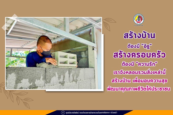 ประชาสัมพันธ์ข่าวประชาสัมพันธ์ สร้างบ้าน ต้องมี “อิฐ” สร้างครอบครัว ต้องมี “ความรัก” เราจึงหลอมรวมสิ่งเหล่านี้… สร้างบ้าน เพื่อมอบความสุข พัฒนาคุณภาพชีวิตให้ประชาชน… July 3, 2021 677 Share Facebook Twitter Google+ Telegram LINE ศูนย์ประชาสัมพันธ์ กองอำนวยการรักษาความมั่นคงภายในภาค4ส่วนหน้า
