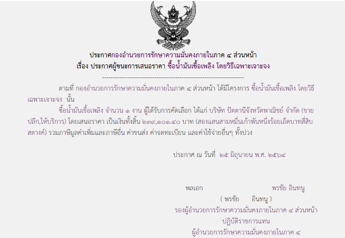 ประกาศผู้ชนะการเสนอราคา ซื้อน้ำมันเชื้อเพลิง โดยวิธีเฉพาะเจาะจง ( ๒๓๙,๑๐๑.๔๐ บาท )