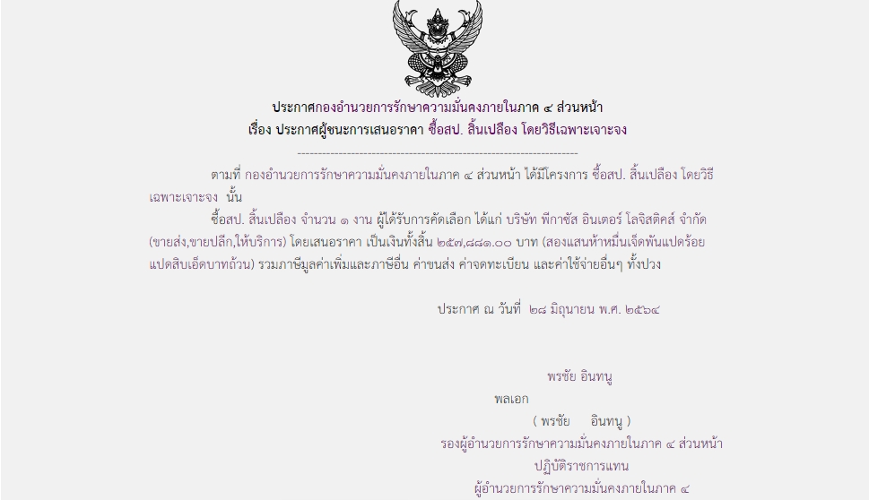 จัดซื้อ จัดจ้างประกาศผู้ชนะการเสนอราคา ประกาศผู้ชนะการเสนอราคา ซื้อสป. สิ้นเปลือง โดยวิธีเฉพาะเจาะจง ( ๒๕๗,๘๘๑.๐๐ บาท ) July 5, 2021 638 Share Facebook Twitter Google+ Telegram LINE กอ.รมน.ภาค ๔ สน.