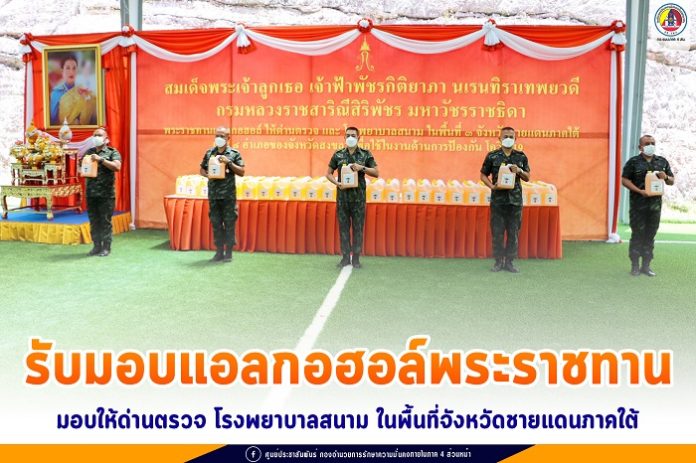 พลโท เกรียงไกร ศรีรักษ์ แม่ทัพภาคที่ 4 /ผู้อำนวยการรักษาความมั่นคงภายในภาค 4 กล่าวว่า นับเป็นพระมหากรุณาธิคุณอย่างหาที่สุดมิได้ ที่ สมเด็จพระเจ้าลูกเธอ เจ้าฟ้าพัชรกิติยาภานเรนทิราเทพยวดี กรมหลวงราชสาริณี สิริพัชร มหาวัชรราชธิดา ทรงทราบถึงสถานการณ์ของเชื้อไวรัส covid-19 ในพื้นที่จังหวัดชายแดนภาคใต้ที่มีการแพร่ระบาดเพิ่มขึ้นอย่างต่อเนื่อง ทรงห่วงใยพสกนิกรในพื้นที่ จึงได้พระราชทานแอลกอฮอล์ ผ่านมายังกองทัพบก เพื่อนำมามอบให้แก่หน่วยเฉพาะกิจในพื้นที่ ไปแจกจ่ายให้กับด่านตรวจและโรงพยาบาลสนามในพื้นที่ ใช้ป้องกันการแพร่ระบาดของเชื้อไวรัส covid-19 ตามมาตรการที่ ศูนย์บริหารสถานการณ์แพร่ระบาดของเชื้อไวรัสโคโรนา 2019 กำหนด ซึ่งในขณะนี้จุดตรวจ ความมั่นคงในพื้นที่ 3 จังหวัดชายแดนภาคใต้และ 4 อำเภอของจังหวัดสงขลา ได้ปรับเปลี่ยนเป็นจุดตรวจ covid-19 เพื่อดูแลพี่น้องประชาชน