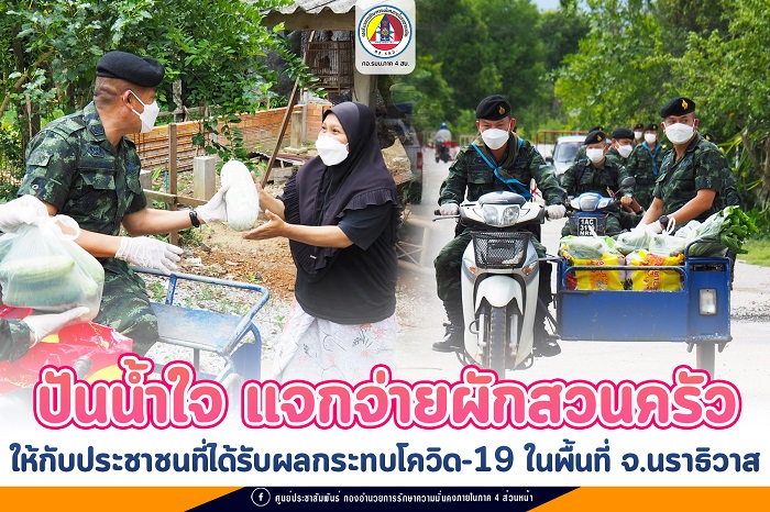 โดยทางหน่วยเฉพาะกิจนราธิวาส ได้เล็งเห็นถึงปัญหาความเดือดร้อนของพี่น้องประชาชนในพื้นที่ จึงเข้าไปให้การช่วยเหลือ เป็นการบรรเทาความเดือดร้อนเบื้องต้น ให้กับพี่น้องประชาชนในพื้นที่ ช่วยลดต้นทุนค่าใช้จ่ายภายในครัวเรือน พร้อมให้กำลังใจ ตลอดจนประชาสัมพันธ์เกี่ยวกับการแพร่ระบาดของโรคโควิด-19 ให้ตระหนักถึงการให้ความร่วมมือในการป้องกันการแพร่ระบาด ได้แก่ การใส่หน้ากากอนามัย หมั่นล้างมือให้สะอาด พร้อมทั้งรณรงค์ให้ประชาชนไปฉีดวัคซีนป้องกันโควิด-19 โดยเร็ว เป็นการสร้างภูมิคุ้มกันหมู่ให้กับประเทศ “ทหารเป็นที่พึ่งของประชาชนในทุกโอกาส”