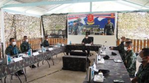 จากนั้น พลตรีไพศาล หนูสังข์ ผู้บังคับหน่วยเฉพาะกิจนราธิวาส เป็นประธานการประชุม ติดตามสถานการณ์การแพร่ระบาดของโรคโควิด-19 ในเขตพื้นที่เมืองเศรษฐกิจ อำเภอสุไหงโก-ลก จังหวัดนราธิวาส ณ ที่ทำการทางยุทธวิธี หน่วยเฉพาะกิจนราธิวาส (หน่วยเฉพาะกิจนราธิวาส 30 ) ตำบลปาเสมัส อำเภอสุไหงโกลก จังหวัดนราธิวาส โดยสั่งการให้หน่วยทหารในพื้นที่ เตรียมความพร้อมสำหรับการให้ความช่วยเหลือพี่น้องประชาชนที่ได้รับความเดือดร้อน ภายใต้มาตรการป้องกันการแพร่ระบาดของโรคติดเชื้อไวรัสโควิด-19