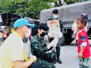 ที่ สวนรถไฟ ถนนปัตตานีภิรมย์ ตำบลอาเนาะรู อำเภอเมือง จังหวัดปัตตานี พันเอก กฤศณัฏฐ์ จันทร รองผู้บังคับหน่วยเฉพาะกิจปัตตานี เป็นผู้แทนลงพื้นที่ร่วมกิจกรรม “มีแล้วแบ่งปัน” เป็นวันที่ 9 ของกิจกรรม เพื่อเป็นการช่วยลดผลกระทบด้านค่าครองชีพแก่ประชาชน หน่วยเฉพาะกิจปัตตานี และสถานีตำรวจภูธรเมืองปัตตานี ได้ร่วมแรงร่วมใจจัดทำอาหารแจกจ่ายให้กับประชาชนในเขตเมืองปัตตานี พร้อมทั้งแจกจ่ายหน้ากากอนามัย เจลล้างมือ สร้างการรับรู้การป้องกันตนเองจากการติดเชื้อ covid-19 ให้กับประชาชน เน้นการจัดกิจกรรมภายใต้มาตรการเฝ้าระวังป้องกันการแพร่ระบาดของโรคติดเชื้อไวรัสโคโรนา 2019 (COVID-19)