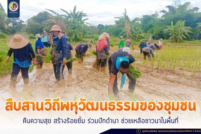 สำหรับการลงแขกดำนาในครั้งนี้ เพื่อเป็นการสร้างบรรยากาศให้ชาวบ้านเกิดความรัก ความสามัคคีปรองดอง สมานฉันท์ ในชุมชนท้องถิ่นสอดคล้องกับนโยบายของกองทัพบก ทั้งยังเป็นการสร้างภาพลักษณ์และความสัมพันธ์อันดีระหว่างเจ้าหน้าที่กับประชาชน ร่วมกันอนุรักษ์สืบสานประเพณีการลงแขกดำนา พลิกฟื้นวิถีชีวิตชาวนาแบบดั้งเดิม นอกจากนั้นยังได้มีโอกาสพูดคุยกับชาวบ้านอย่างใกล้ชิด ถามไถ่ปัญหาสารทุกข์สุกดิบ ซึ่งประชาชนรู้สึกดีใจ และขอบคุณเจ้าหน้าที่ พร้อมที่จะสนับสนุนนโยบายของรัฐบาล เพื่อสร้างความสุขอย่างยั่งยืน