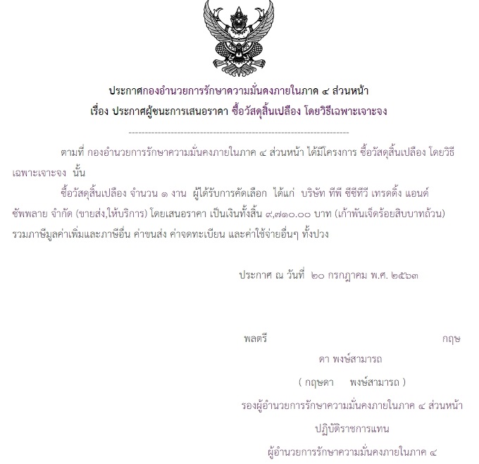 ประกาศผู้ชนะการเสนอราคา ซื้อวัสดุสิ้นเปลือง โดยวิธีเฉพาะเจาะจง (9,710.00)(2)