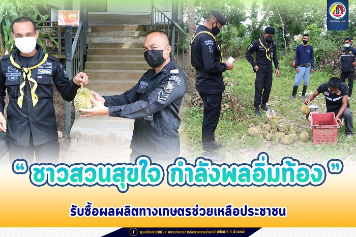 ทั้งนี้ การรับซื้อผลผลิตทางเกษตร (ทุเรียนพันธ์พื้นบ้าน) ได้นำไปแจกจ่ายให้กับกำลังพลของหน่วย ซึ่งสร้างความสุขใจ อิ่มท้อง และมีโภชนาการ ให้กำลังพลทหารได้อย่างมาก เพื่อเป็นการสร้างขวัญและกำลังใจให้กับกำลังพลในพื้นที่ รวมถึงได้ช่วยบรรเทาความเดือดร้อนและดูแลเกษตรกรในพื้นที่ ให้ร่วมผ่านพ้นวิกฤตการแพร่ระบาดของเชื้อ COVID-19 ครั้งนี้ไปด้วยกัน
