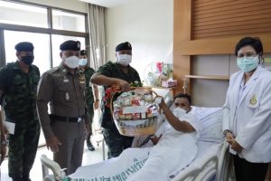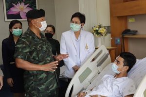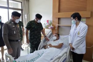 วันนี้ (17 กรกฎาคม 2564) เวลา 10.00 น. ที่ ตึกเฉลิมพระเกียรติชั้น 8 โรงพยาบาลสงขลานครินทร์ อำเภอหาดใหญ่ จังหวัดสงขลา พลโท เกรียงไกร ศรีรักษ์ แม่ทัพภาคที่ 4 / ผู้อำนวยการรักษาความมั่นคงภายในภาค 4 เดินทางเยี่ยมอาการ สิบตำรวจโท วีรภัทร บัวแก้ว และ สิบตำรวจตรี เดชภณ รุกขพันธ์ เจ้าหน้าที่ตำรวจ สังกัดสถานีตำรวจภูธรสายบุรี ซึ่งได้รับบาดเจ็บจากเหตุคนร้ายลอบวางระเบิดชุดปฏิบัติการสืบสวน สถานีตำรวจภูธรสายบุรี ขณะกลับจากปฏิบัติหน้าที่ปิดล้อมตรวจค้นพื้นที่ตำบลกะดุนง เหตุเกิดบริเวณริมถนนภายในหมู่บ้านเจาะกือแย – กะพ้อ บ้านกูแว หมู่ที่ 2 ตำบลกะดุนง อำเภอสายบุรี จังหวัดปัตตานี ทำให้มีเจ้าหน้าที่ได้รับบาดเจ็บจำนวน 10 นาย เมื่อวันที่ 10 กรกฎาคม 2564 ที่ผ่านมา