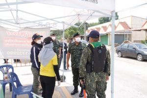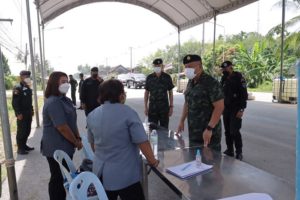 ต่อมาที่จุดตรวจคัดกรองโควิด-19 หน้าโรงพยาบาลส่งเสริมสุขภาพตำบลลำใหม่ อำเภอเมือง จังหวัดยะลา ซึ่งเป็นเส้นทางรอยต่อจังหวัดปัตตานีและจังหวัดยะลา เพื่อคุมเข้มมาตรการการเดินทางเข้ามายังพื้นที่ แม่ทัพภาคที่ 4 ได้เยี่ยมให้กำลังใจพร้อมตรวจเยี่ยมการปฏิบัติงาน เน้นย้ำถึงการปฏิบัติหน้าที่ ในการควบคุมเฝ้าระวัง การแพร่ระบาดของเชื้อไวรัสโควิด-19 สำหรับผู้ที่มาจากพื้นที่ต่างจังหวัด โดยขอความร่วมมือพี่น้องประชาชนต้องไม่ปิดบังข้อมูล และปฏิบัติตามมาตรการของทางจังหวัด ด้วยความร่วมมืออย่างเคร่งครัดด้วย โดยแม่ทัพภาคที่ 4 ได้มอบสิ่งของอุปโภค-บริโภค ตลอดจนอุปกรณ์ในการป้องกันตนเอง ให้แก่เจ้าหน้าที่ประจำด่านตรวจคัดกรอง เพื่อใช้ในการ ปฏิบัติภารกิจในการป้องกันตนเองตลอดจนนำไปแจกจ่ายให้พี่น้องประชาชนที่ผ่านเส้นทางดังกล่าวด้วย