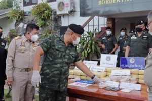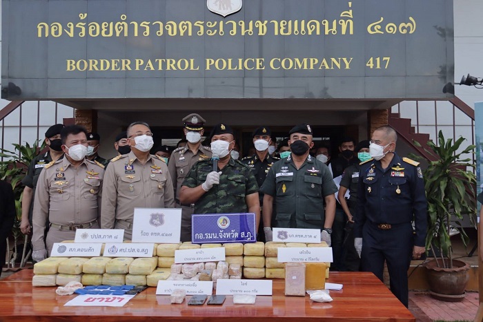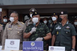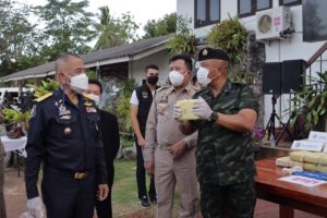 วันนี้ 22 กรกฎาคม 2564 เวลา 17.00 น. พลโท เกรียงไกร ศรีรักษ์ แม่ทัพภาคที่ 4 / ผู้อำนวยการรักษาความมั่นคงภายในภาค 4 พร้อมด้วย นายวิชวุทย์ จินโต ผู้ว่าราชการจังหวัดสุราษฎร์ธานี และพลตำรวจตรี ณัฐ สิงห์อุดม รองผู้บัญชาการตำรวจตระเวนชายแดน รักษาราชการแทน ผู้บัญชาการตำรวจตระเวนชายแดนภาค 4 ร่วมแถลงผลการปฏิบัติการปราบปรามยาเสพติดในพื้นที่ สุราษฎร์ธานี – กระบี่ โดยสามารถจับกุมนายอุทัย เพ็ชรรัตน์ (สี) อายุ 33 ปี อยู่บ้านเลขที่ 6/9 หมู่ที่ 8 ตำบลควนทอง อำเภอขนอม จังหวัดนครศรีธรรมราช และนาย อนุเชษฐ์ สีทองนาค (เชษฐ์) อายุ 23 ปี อยู่บ้านเลขที่ 56 หมู่ที่ 8 ตำบลควนทอง อำเภอขนอม จังหวัดนครศรีธรรมราช บริเวณศาลาริมถนน หมู่ที่ 12 ตำบลปากแพรก อำเภอดอนสัก จังหวัดสุราษฎร์ธานี จนสามารถขยายผล จับกุมยาเสพติดเพิ่มเติม บริเวณสวนข้างบ้าน พบของกลางยาเสพติดหลายประเภท เบื้องต้นแจ้งข้อกล่าวหาร่วมกันมียาเสพติดให้โทษประเภทที่ 1 ( เมทแอมเฟตามีน หรือไอซ์ ยาบ้า เฮโรอีน) ไว้ในครอบครองเพื่อจำหน่าย และพยายามจำหน่ายโดยผิดกฎหมาย