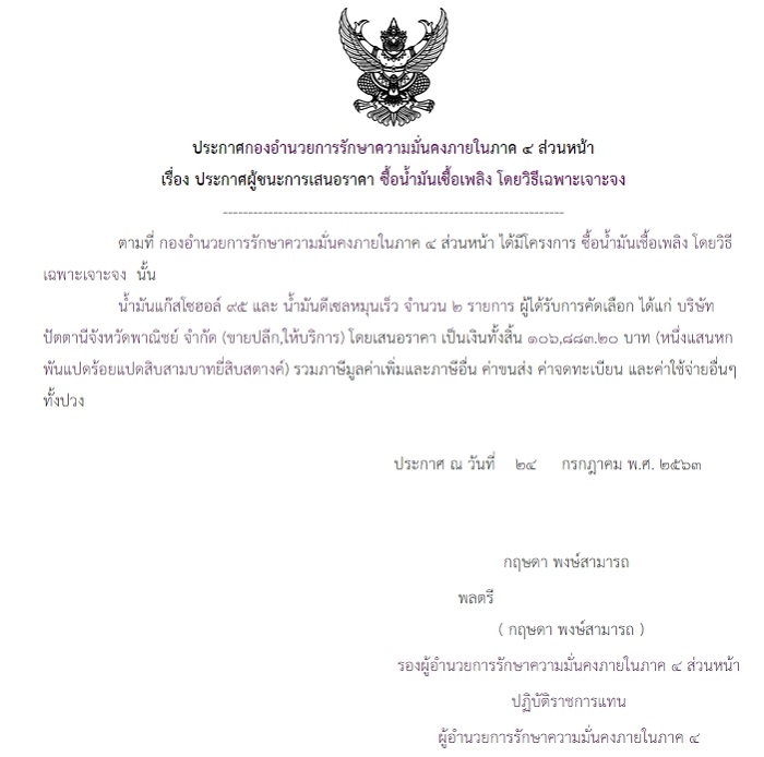 ประกาศผู้ชนะการเสนอราคา ซื้อน้ำมันเชื้อเพลิง โดยวิธีเฉพาะเจาะจง (106,883.20)