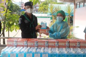 วันนี้ 24 กรกฎาคม 2564 เวลา 09.00 น. ที่หน่วยเฉพาะกิจกรมทหารพรานที่ 30 ตำบลตลิ่งชัน อำเภอบันนังสตา จังหวัดยะลา พันเอกชาตินักรบ พรศิริรัตน์ ผู้บังคับหน่วยเฉพาะกิจ กรมทหารพรานที่ 30 เป็นประธานมอบเครื่องมือเวชภัณฑ์ทางการแพทย์แก่หน่วยขึ้นตรงในพื้นที่จำนวน 15 หน่วย เพื่อนำไปใช้ในการดูแลประชาชนจากการแพร่ระบาดของเชื้อไวรัสโควิด-19 จากนั้นได้เดินทางต่อไปยังโรงพยาบาลบันนังสตา อำเภอบันนังสตา เพื่อทำการมอบเวชภัณฑ์ดังกล่าวแก่บุคลากรทางแพทย์