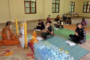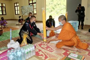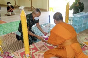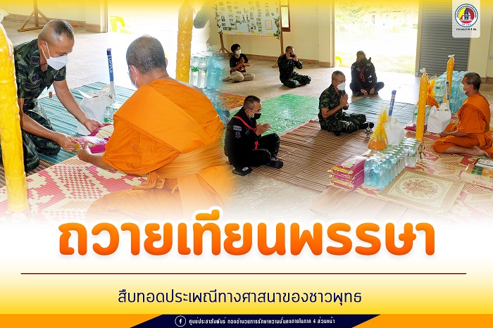 จากสถานการณ์การแพร่ระบาดของโรคโควิด-19 ที่ยังคงเพิ่มขึ้นอย่างต่อเนื่องในขณะนี้ ประกอบกับพื้นที่จังหวัดชายแดนภาคใต้ เป็นพื้นที่ควบคุมสูงสุดเข้มงวด ตามประกาศของ ศบค. โดยห้ามจัดกิจกรรมที่มีความเสี่ยงต่อการแพร่โรคในพื้นที่ อีกทั้งห้ามจัดกิจกรรมซึ่งมีการรวมกลุ่มกันของบุคคลที่มีจำนวนรวมกันมากกว่า 5 คน อันจะเสี่ยงต่อการแพร่ระบาดของเชื้อ ทำให้การจัดกิจกรรมถวายเทียนพรรษาให้แก่วัดต่างๆ ในพื้นที่ไม่สามารถดำเนินการได้โดยสะดวกดังเช่นที่ปฏิบัติมา กองอำนวยการรักษาความมั่นคงภายในภาค 4 ส่วนหน้า จึงได้จัดพิธีมอบเทียนพรรษาให้กับหน่วยเฉพาะกิจในพื้นที่ นำไปถวายให้แก่วัด และสำนักสงฆ์ ในพื้นที่ 3 จังหวัดชายแดนภาคใต้และ 4 อำเภอของจังหวัดสงขลา รวมจำนวน 375 วัด เพื่อทำนุบำรุงพระพุทธศาสนาและสืบทอดประเพณี วัฒนธรรมอันดีงามให้ดำรงคงอยู่ตลอดไป