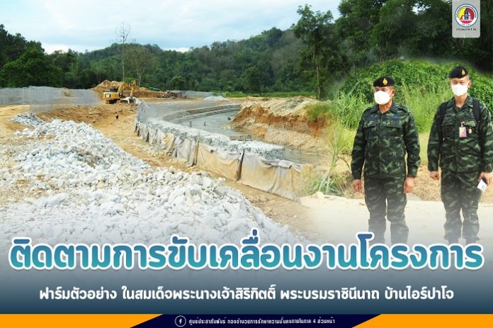 พลตรี ไพศาล หนูสังข์ ผู้บัญชาการกองพลทหารราบที่ 15 / ผู้อำนวยการศูนย์ประสานงานโครงการอันเนื่องมาจากพระราชดำริ ลงพื้นที่ตรวจเยี่ยมและติดตามการขับเคลื่อนงานโครงการฟาร์มตัวอย่าง ในสมเด็จพระนางเจ้าสิริกิตติ์ พระบรมราชินีนาถ บ้านไอร์ปาโจ ตำบลภูเขาทอง อำเภอสุคิริน จังหวัดนราธิวาส โดยได้รับฟังปัญหา ข้อขัดข้อง ในการดำเนินงาน พร้อมกับได้มอบนโยบายในการบริหารจัดการภายใน โครงการฟาร์มตัวอย่างฯ ให้เป็นไปตามนโยบายที่กำหนด เพื่อให้สามารถเลี้ยงดูตนเองได้ พร้อมทั้งสอบถามปัญหาความเดือดร้อน ความต้องการในช่วงสถานการณ์โควิด-19 และสถานการณ์ความปลอดภัยในพื้นที่ จากนั้น ผู้บัญชาการกองพลทหารราบที่ 15 ได้เยี่ยมชมการดำเนินกิจกรรมของฟาร์มในการคัดแยกจัดส่งผลิตทางการเกษตร ทั้งนี้ได้ร่วมทำกิจกรรมกับสมาชิกในโครงการดำเนินปรับปรุงพื้นที่เพาะปลูกภายในโครงการ การพัฒนาพื้นที่ และตรวจเยี่ยมการก่อสร้างผนังกั้นน้ำที่ได้รับการสนับสนุนงบประมาณจากกรมป้องกันและบรรเทาสาธารณภัย รวมถึงเยี่ยมประชาชนที่มาอาศัยพื้นที่ลำน้ำไอร์ปาโจที่ผ่านในโครงการฟาร์มตัวอย่างในการประกอบอาชีพร่อนทองซึ่งนับเป็นอีก 1 อาชีพเสริมให้กับชุมชนบ้านไอร์ปาโจ