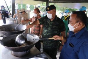 ต้องมีการประเมินจากคณะแพทย์แล้วเป็นผู้ป่วยกลุ่มสีเขียว ที่ไม่มีอาการแสดงออกรุนแรง และสามารถช่วยเหลือตัวเองได้ ก่อนแม่ทัพภาคที่ 4 จะได้มอบเครื่องบริโภค น้ำดื่ม ขนมของว่าง ที่ได้รับการสนับสนุนจากภาคส่วนต่าง ๆ มอบให้แก่บุคลากรทางการแพทย์เจ้าหน้าที่ และผู้ป่วยที่เข้ารับการรักษา พร้อมกันนี้แม่ทัพภาคที่ 4 ร่วมปรุงอาหารมื้อแรกจากรถครัวสนาม ด้วยเมนู ไก่ทอด ไข่ดาว ให้กับผู้ป่วยที่เข้ารับการรักษายังโรงพยาบาลสนามแห่งนี้ ตลอดจนพูดคุยให้กำลังผู้ป่วยมีกำลังใจในการต่อสู่กับเชื้อไวรัส covid-19 ให้ผ่านพ้นวิกฤตไปพร้อมกัน
