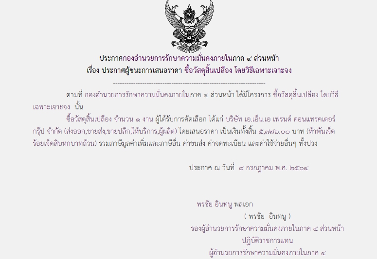 ประกาศผู้ชนะการเสนอราคา ซื้อวัสดุสิ้นเปลือง โดยวิธีเฉพาะเจาะจง ( ๕,๗๗๖.๐๐ บาท )