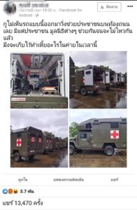 ตามที่มีบางเพจนำรูปรถพยาบาลสนามที่จอดเรียงกันอยู่ตามโพสต์ด้านล่าง เอาไปบิดเบือนข้อมูลว่าซื้อมาจอดทิ้งไว้ไม่เอามาช่วยเหลือประชาชนนั้น