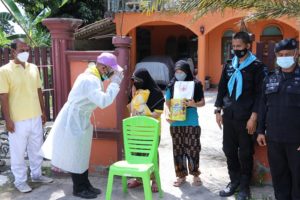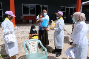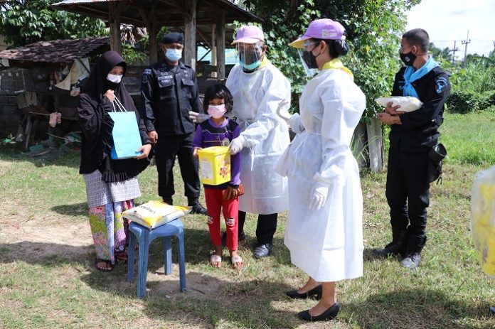 วันนี้ ( 28 กรกฎาคม 2564 ) เวลา 09.30 น. ที่ หมู่บ้านสะกำ อำเภอมายอ จังหวัดปัตตานี พันเอกนายแพทย์ โชคชัย ขวัญพิชิต รองผู้อำนวยการศูนย์อำนวยการแพทย์จังหวัดชายแดนภาคใต้ พร้อมคณะ ลงพื้นที่เยี่ยมเยียนประชาชนที่รักษาตัวหายจากการติดเชื้อไวรัส Covid – 19 ในพื้นที่อำเภอมายอ จังหวัดปัตตานี พร้อมมอบสิ่งของอุปโภคบริโภค เพื่อเป็นขวัญกำลังใจ โดยมี ชุดปฏิบัติการกิจการพลเรือน หน่วยเฉพาะกิจกรมทหารพรานที่ 42, กำนันตำบลสะกำ, ผู้อำนวยการโรงพยาบาลส่งเสริมสุขภาพตำบลสะกำ, ผู้ใหญ่บ้าน, ผู้นำท้องที่, ผู้นำท้องถิ่น และส่วนที่เกี่ยวข้องเข้าร่วม