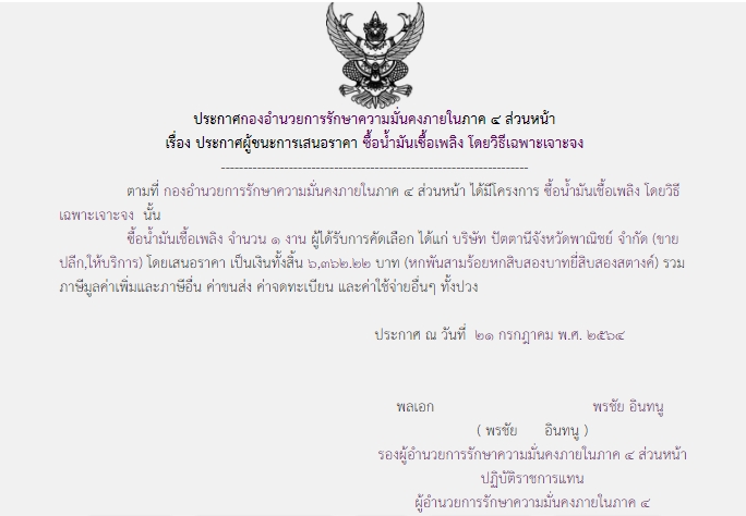ประกาศผู้ชนะการเสนอราคา ซื้อน้ำมันเชื้อเพลิง โดยวิธีเฉพาะเจาะจง ( ๖,๓๖๒.๒๒ บาท )