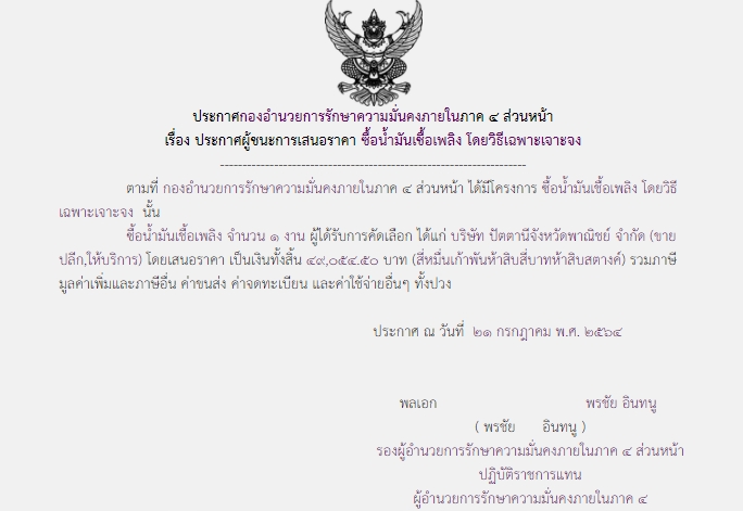 จัดซื้อ จัดจ้างประกาศผู้ชนะการเสนอราคา ประกาศผู้ชนะการเสนอราคา ซื้อน้ำมันเชื้อเพลิง โดยวิธีเฉพาะเจาะจง ( ๔๙,๐๕๔.๕๐ บาท ) July 29, 2021 539 Share Facebook Twitter Google+ Telegram LINE กอ.รมน.ภาค ๔ สน.